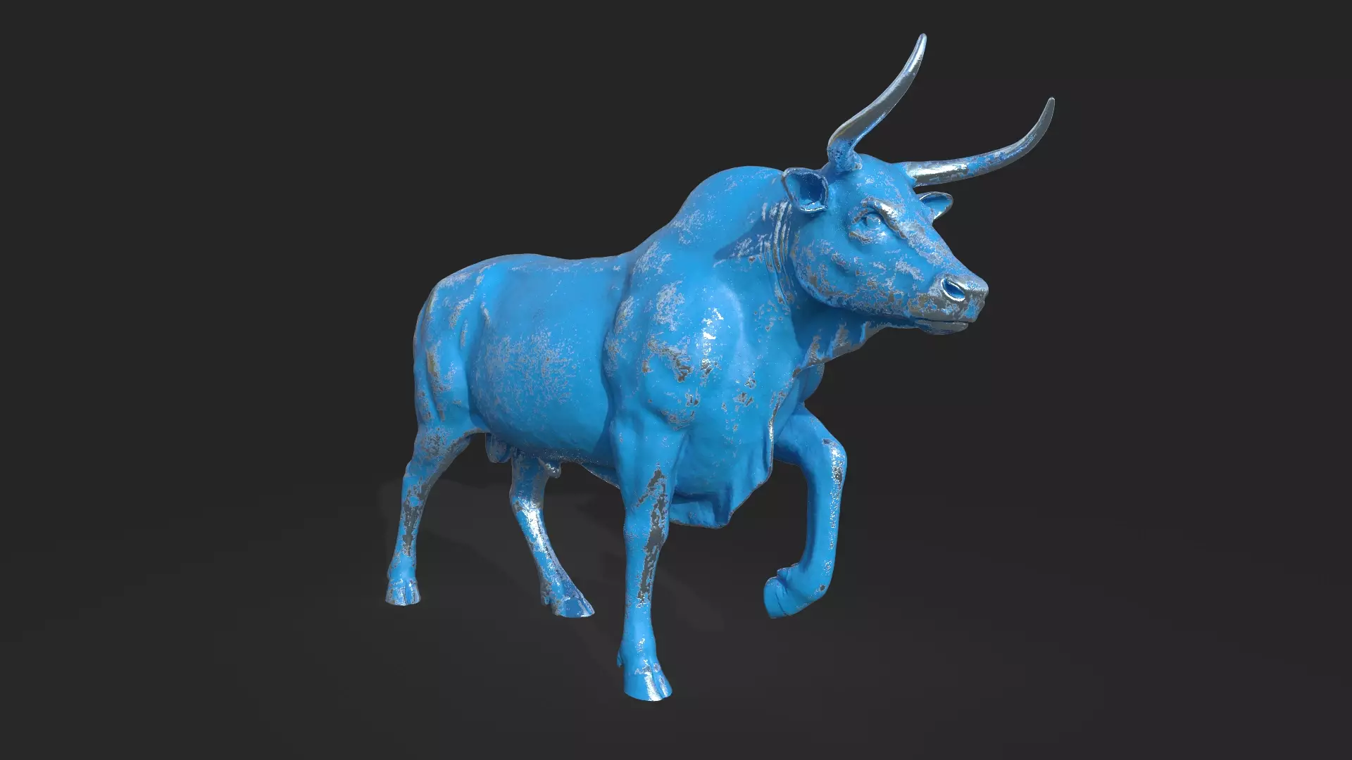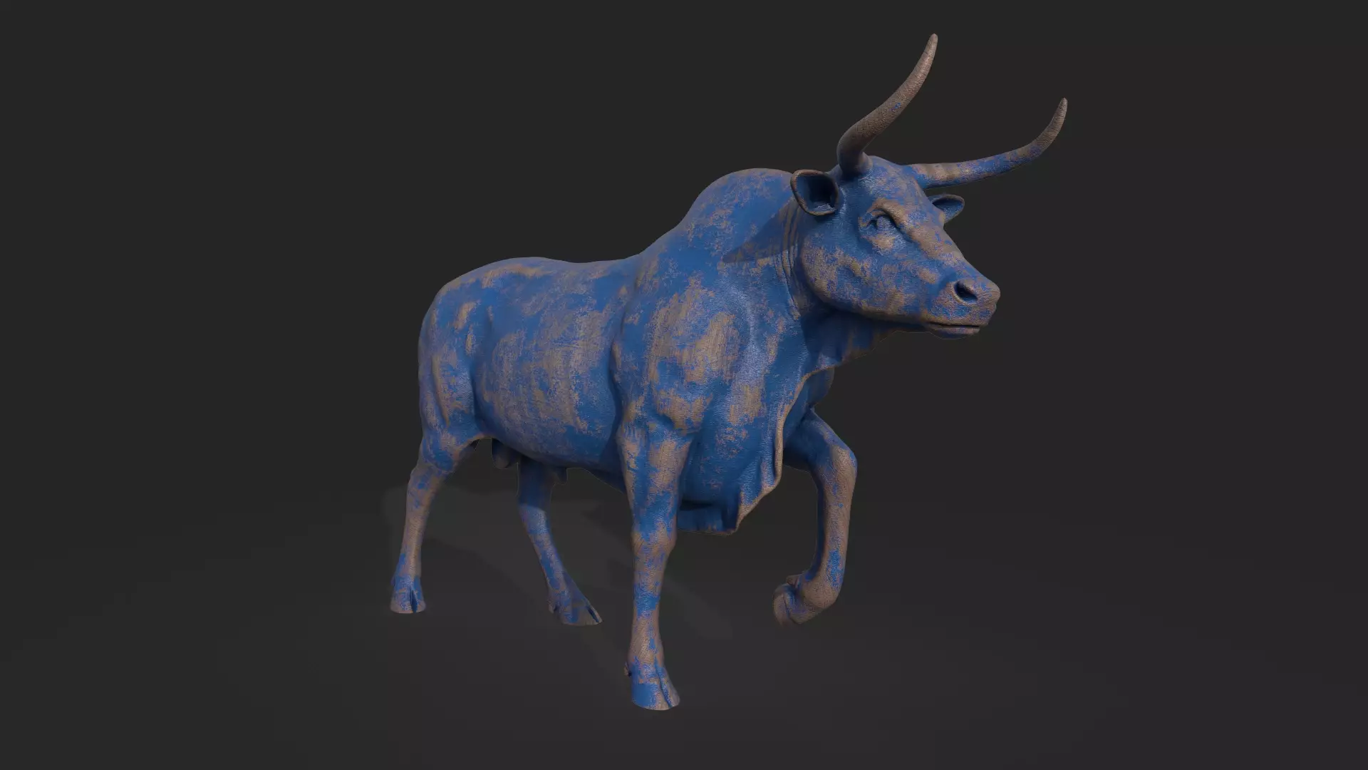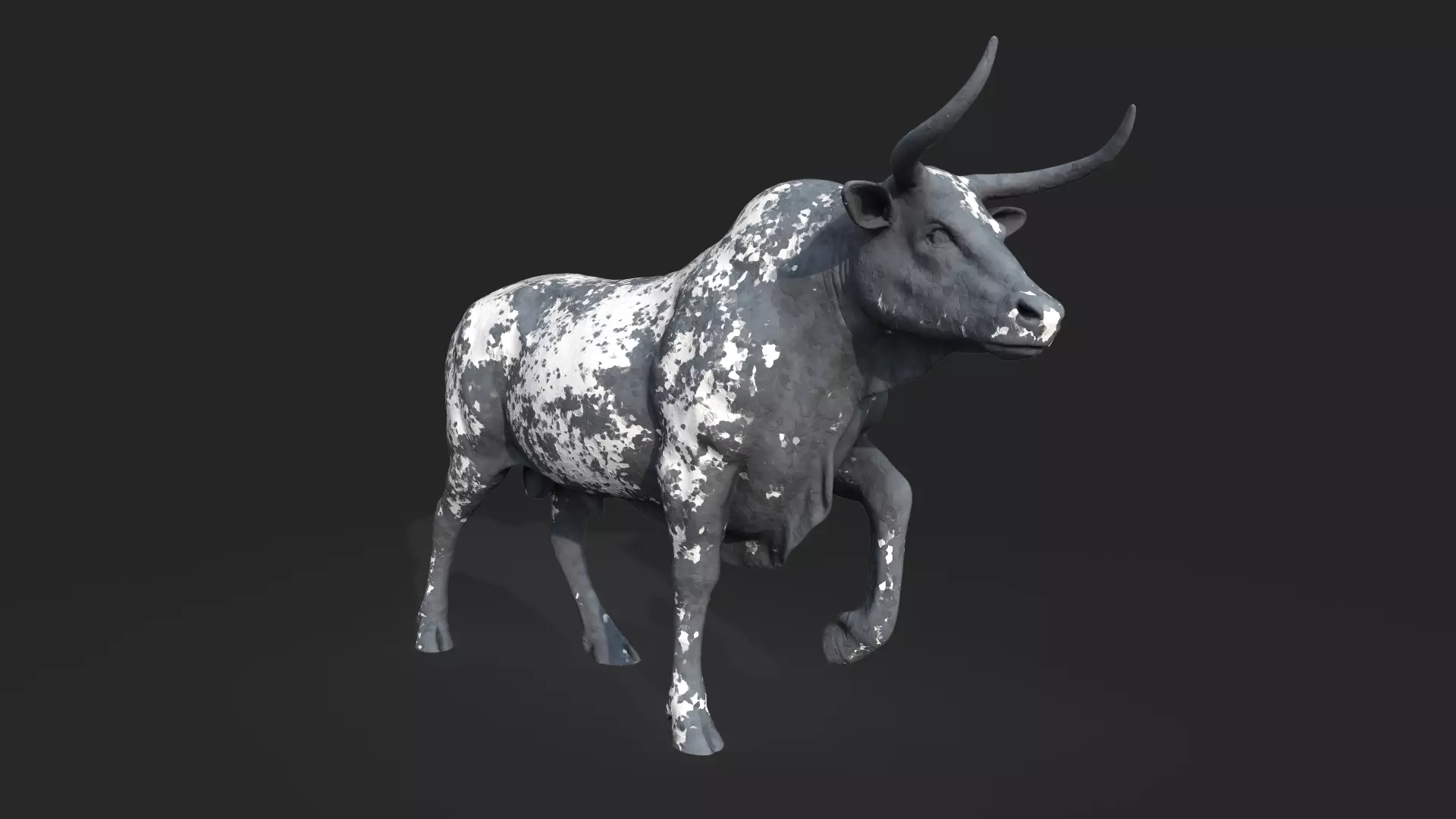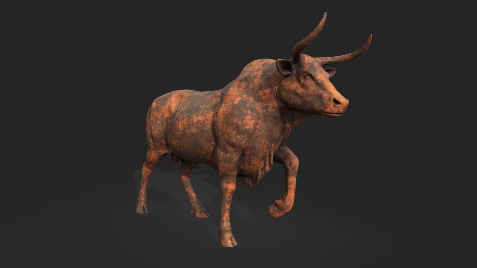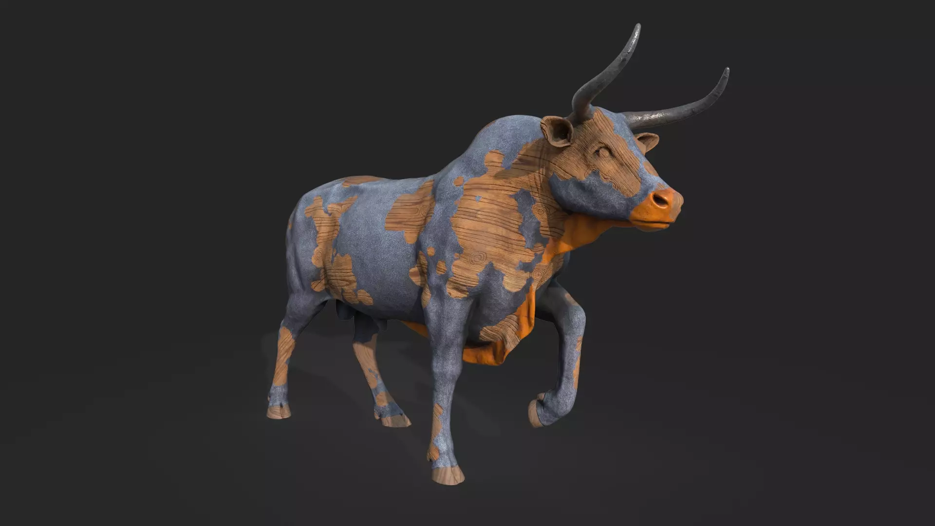 J’ai reçu un scan 3D du Taureau que j’ai ensuite optimisé, puis j’ai dû m’occuper de ses UV, comprenant le moins de coupures possible, afin d’avoir la texture la plus homogène. J’ai par la suite créé des textures, autant statiques qu’animées, afin qu’elles puissent être utilisées par les Vidéoprojecteurs sur le modèle réel.